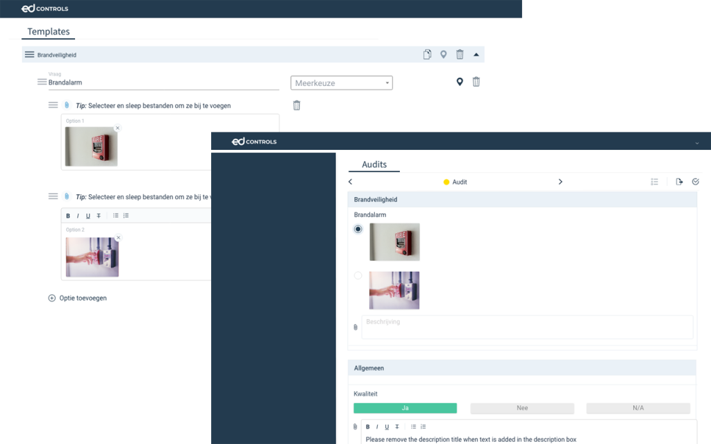 Het is nu mogelijk om afbeeldingen als een antwoord toe te voegen in het Audit template. Zo kan je nog exacter aangeven waar het precies om gaat.