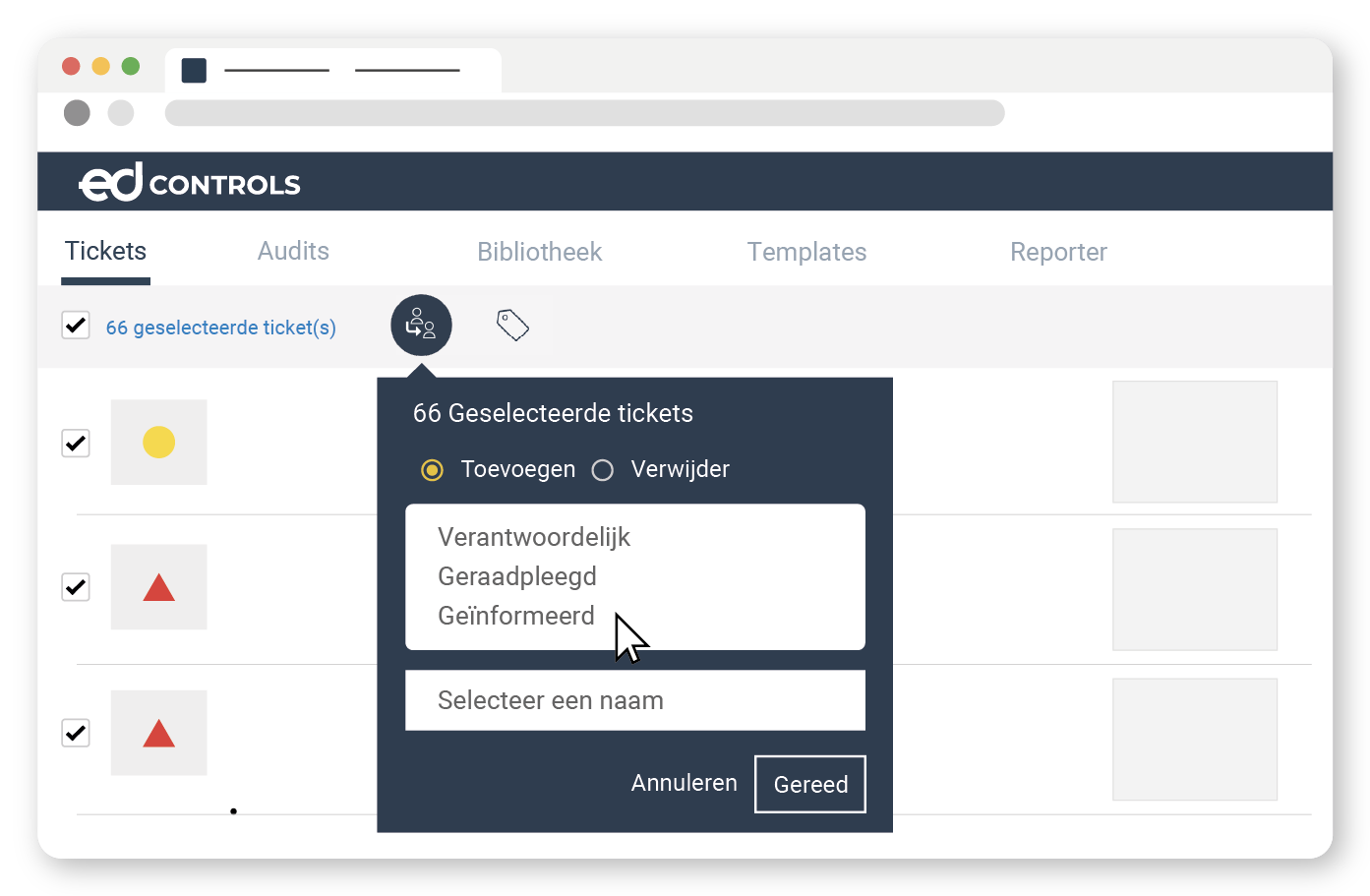 Waar het eerder al mogelijk was om een Verantwoordelijke in een keer toe te voegen aan alle of een grote hoeveelheid Tickets, heeft team Ed Controls het nu mogelijk gemaakt om daarnaast nog andere acties in "bulk" te kunnen uitvoeren. Dit maakt Ed Controls nóg makkelijker in gebruik.