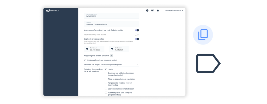 Bij het beheren van projecten in Ed Controls is consistentie essentieel. Met onze nieuwste update worden projectlabels nu automatisch beschikbaar in alle modules: Tickets, Bibliotheek, Audits en Templates. Dit betekent dat een label dat je in één module aanmaakt of selecteert, direct zichtbaar is in de andere modules. Handmatig werk wordt overbodig, en je kunt direct aan de slag.